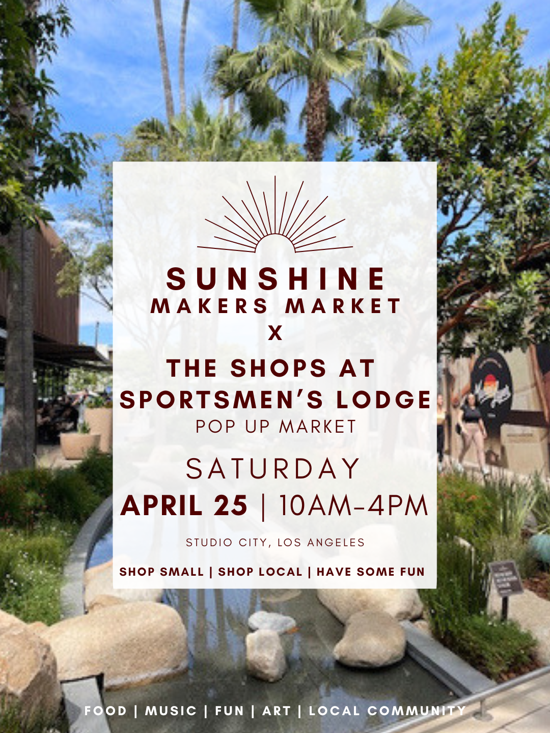 Bring your your bestie and your boo, bring all the kiddos and join us for a delightful day of shopping incredible local shops, one of a kind makers, artists and small businesses all at Studio City's favorite locale: The Shops at Sportsmen's Lodge! Enjoy the sweetest day ever- we've got something for everyone and a guaranteed great time to boot.